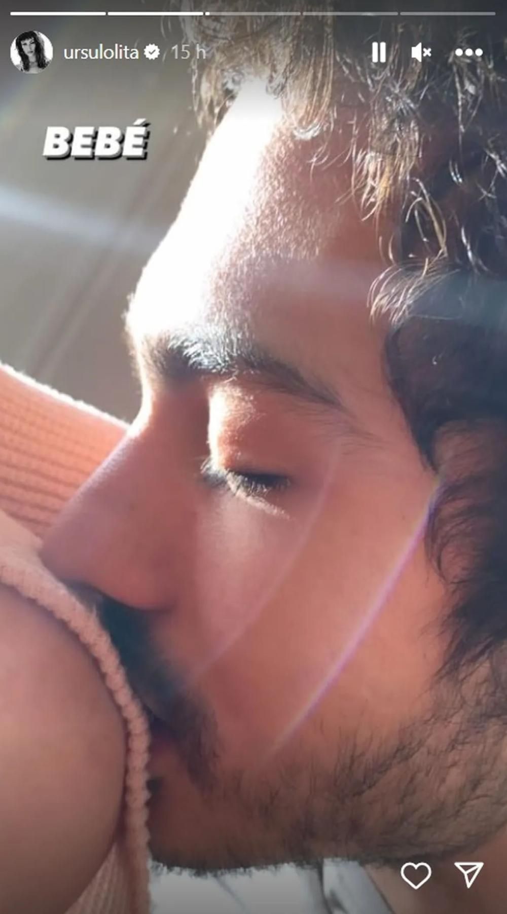 En la postal se ve al hijo de Ricardo y Florencia Bas besando uno de los pechos de la actriz y hasta incluso mordiéndola de una manera muy romántica, lo que generó un revuelo en las redes sociales.