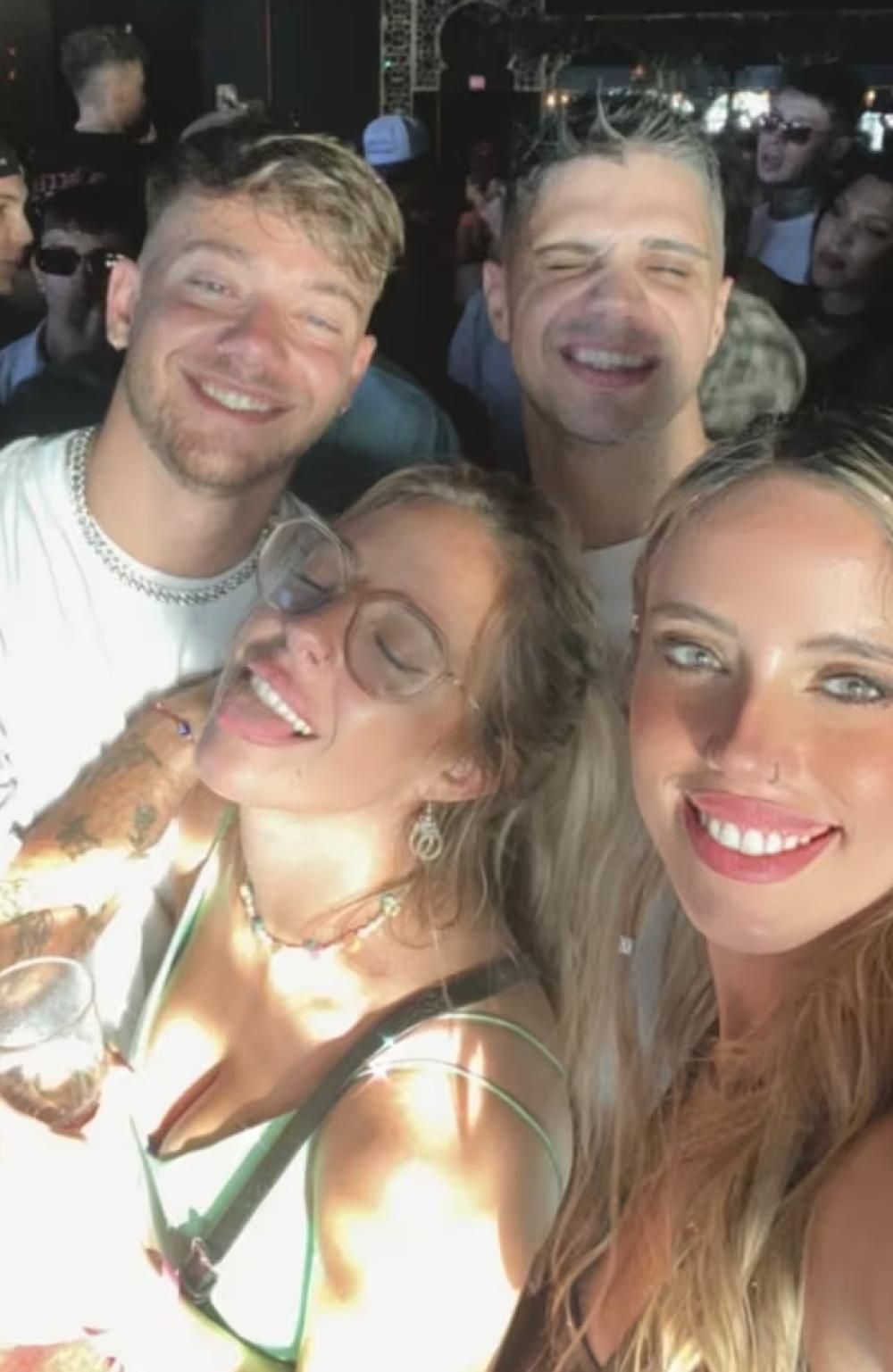 La historia que subió a su cuenta de Instagram Denisse también muestra a Alexis "Conejo" Quiroga bailando en un boliche de la zona de Puerto madero en grupo.