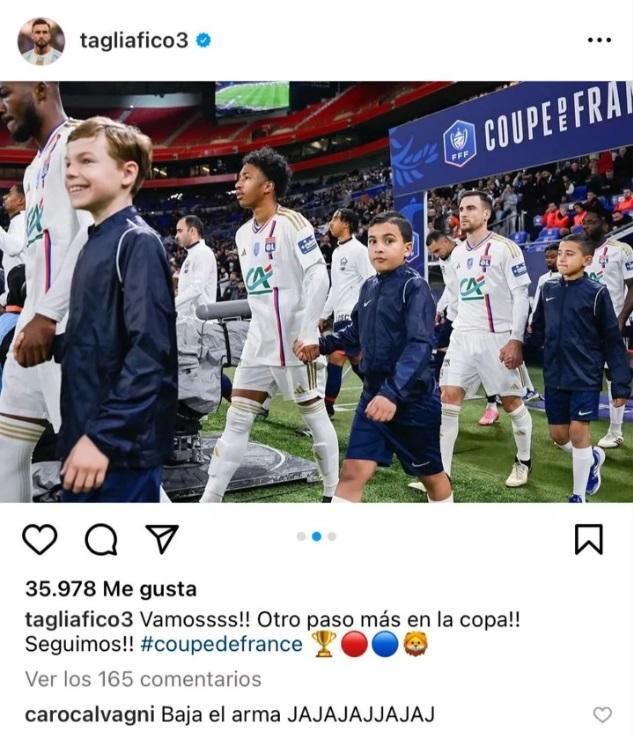 Lo que parecía ser una posteo más de Instagram, como el de cualquier futbolista, terminó despertando risas y todo tipo de comentarios. Sucede que Nicolás Tagliafico compartió fotos de partido en Francia y su esposa, Carolina Calvagni, sorprendió con un comentario hot.
