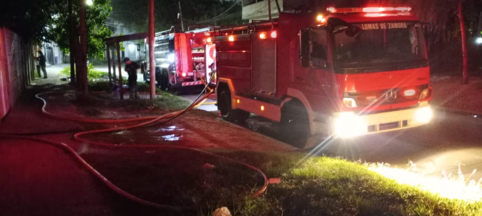 De inmediato se acercaron al lugar tres dotaciones y 10 efectivos del cuerpo de Bomberos de Lomas, a cargo del Sargento Martín Nieto. Las unidades se instalaron en plena calle y extendieron las mangueras hacia el terreno.