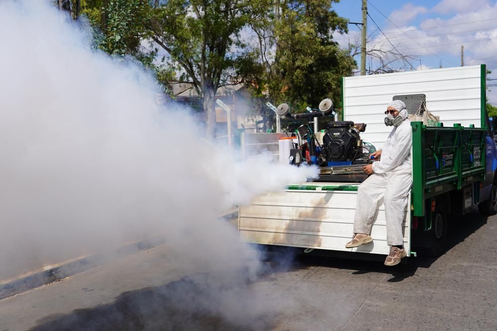 En estos días continuaron las fumigaciones en plazas, parques y calles. En las recorridas se usan equipos de última generación que tienen un gran poder de cobertura en lugares abiertos como termonieblas, termonebulizadores, vaporizadores y camionetas.
