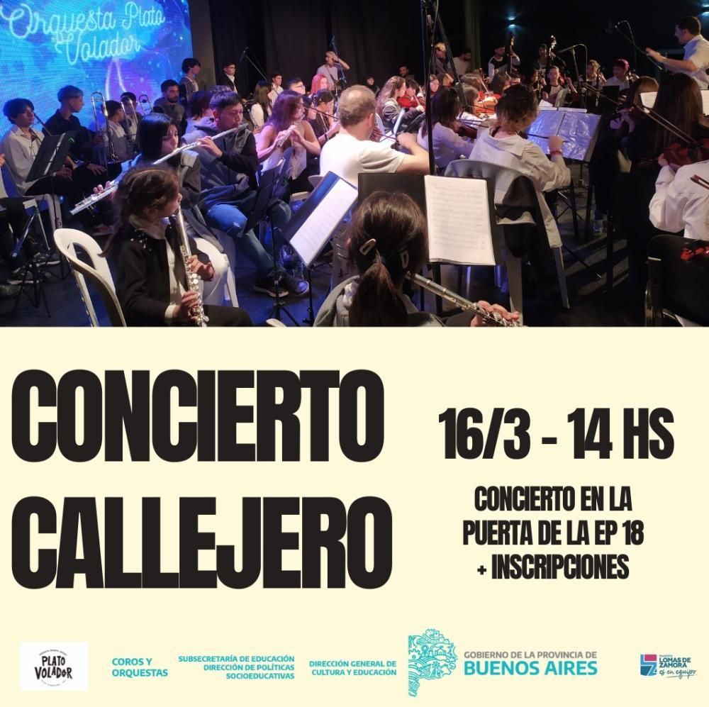Además, el sábado 16, en la puerta de la Escuela habrá un concierto callejero a partir de las 14, que cuenta con el apoyo del Municipio de Lomas de Zamora.