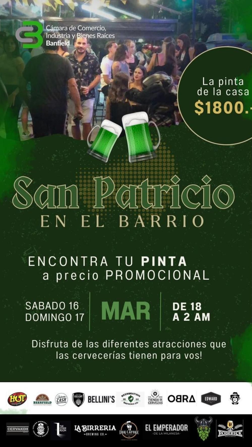 Con el objetivo de fomentar el consumo en el polo gastronómico de Banfield se desarrollará este fin de semana por primera vez allí, la fiesta de San Patricio en el barrio.