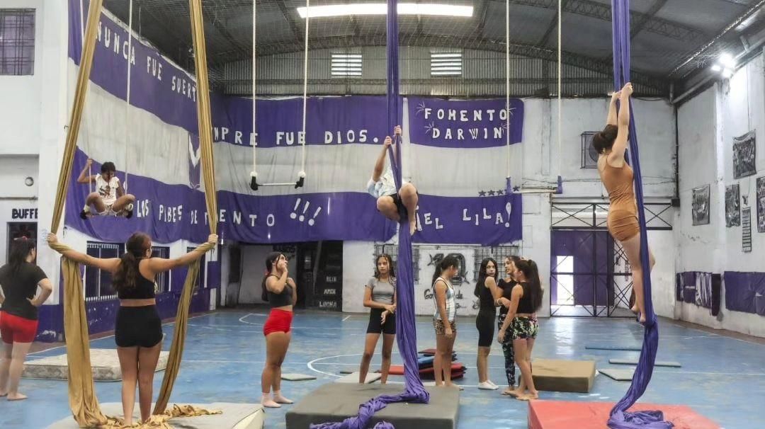 Por su parte, en el Punto Joven "Sociocultural" de la calle Darwin 1735 (Fiorito) llevan a cabo encuentros de teatro, dibujo y pintura, acrobacia en tela, técnica de grabado y trapecio aéreo.