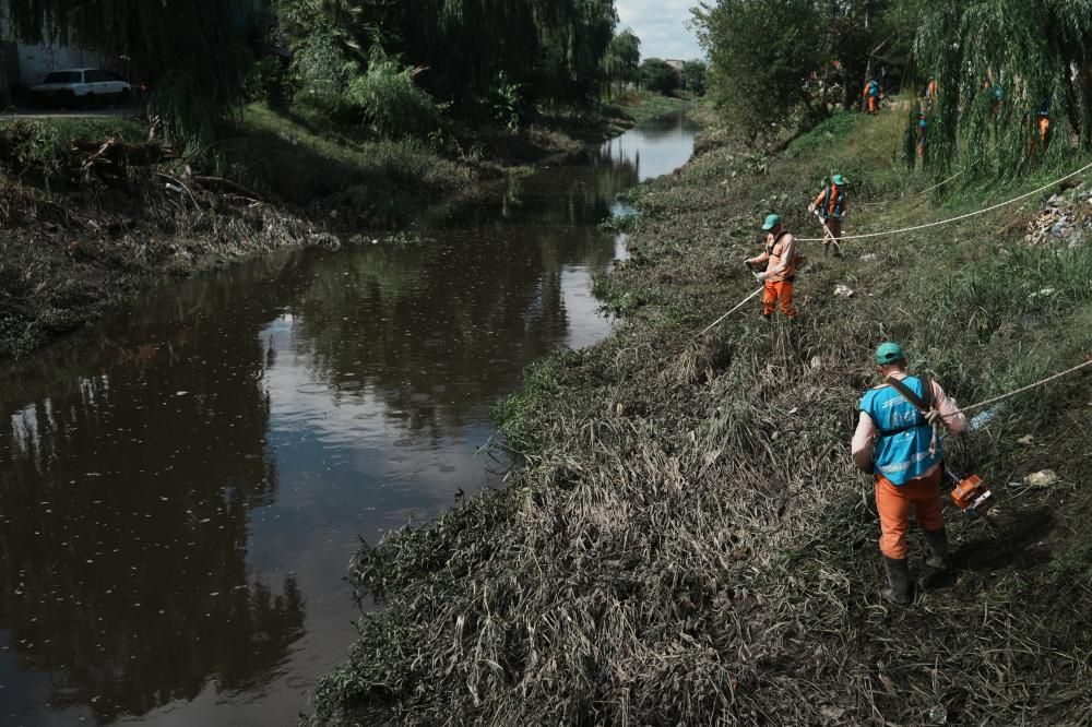 Desmalezadoras, camiones, carretillas y distintos elementos forman parte de los operativos junto a Provincia para garantizar la mejor circulación del agua.
