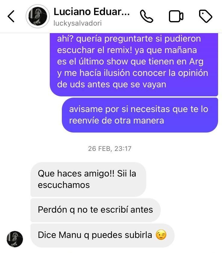 El propio Lucky un mensaje a Zann, donde se informaba de la probación de Manu para subir a las redes el remix.