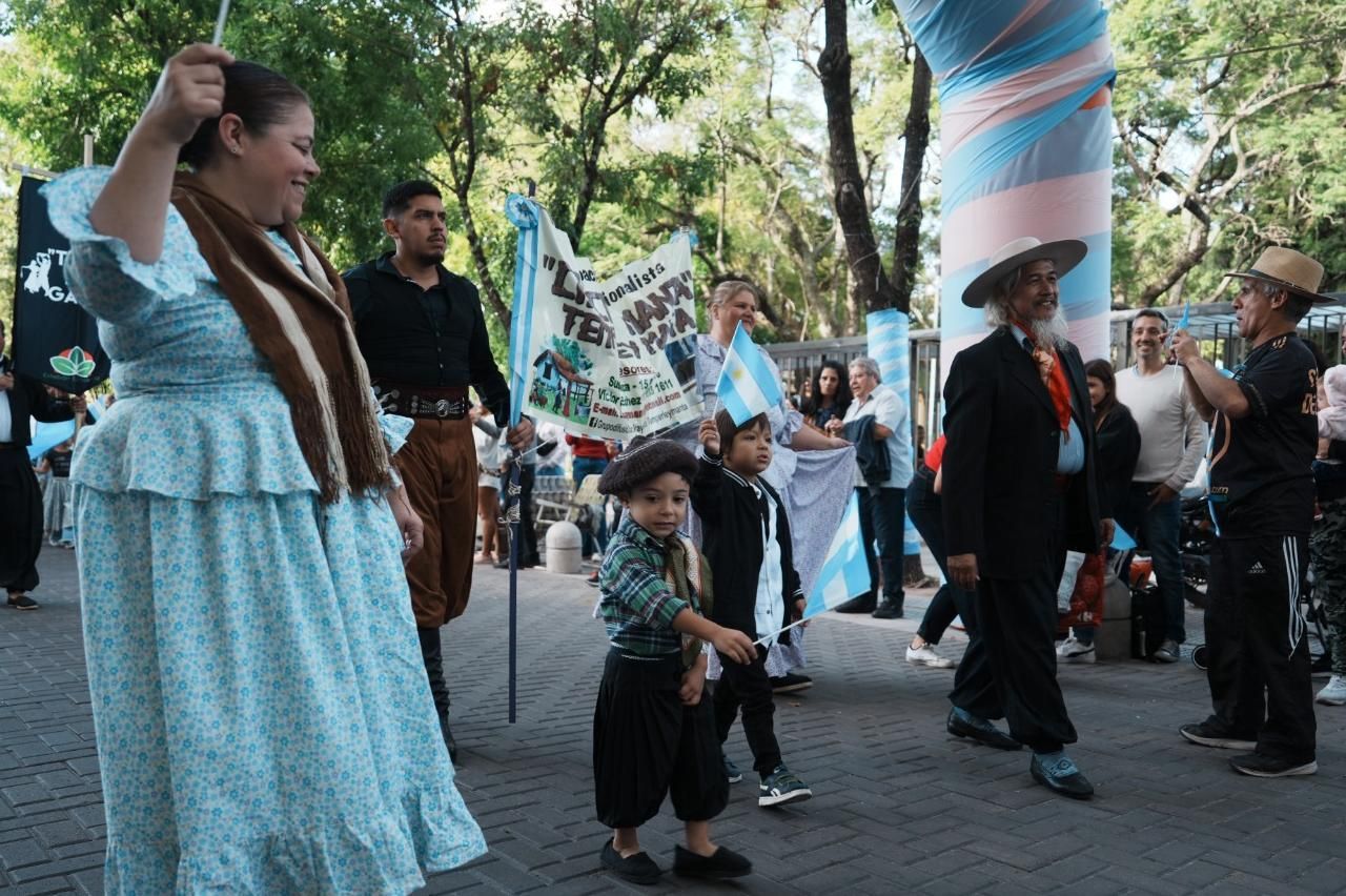 Cientos de familias de Lomas se acercaron con banderas argentinas para vivir esta jornada especial, con un gran desfile cívico y una peña folklórica.