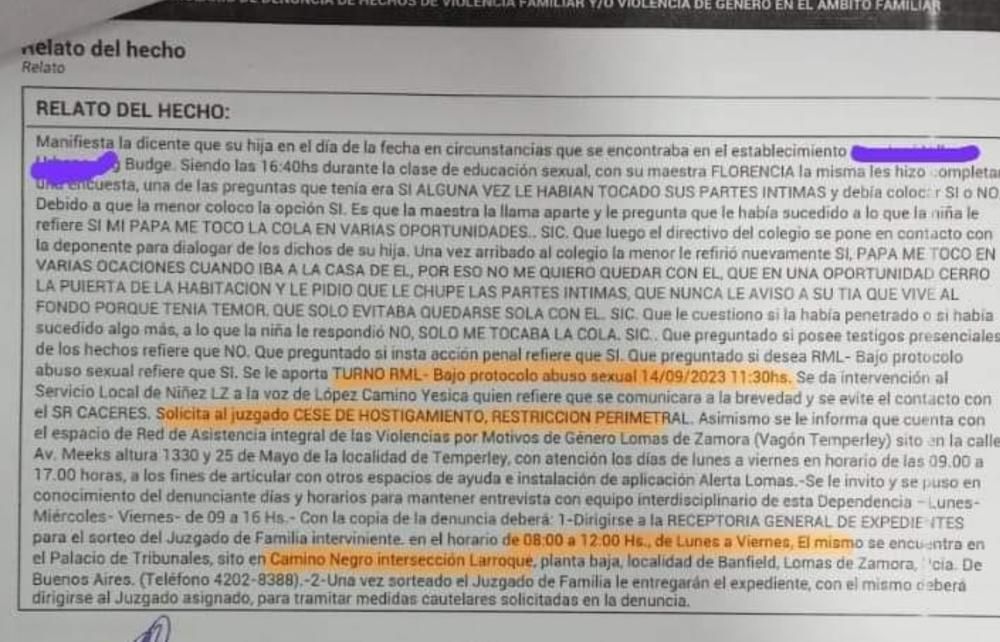 Todo comenzó con el testimonio de la víctima, que durante un taller de educación sexual desarrollado en agosto de 2023, contó la horrible situación que habría sufrido por parte de su padre, lo que alarmó a la docente a cargo de la clase, quien avisó a las autoridades.