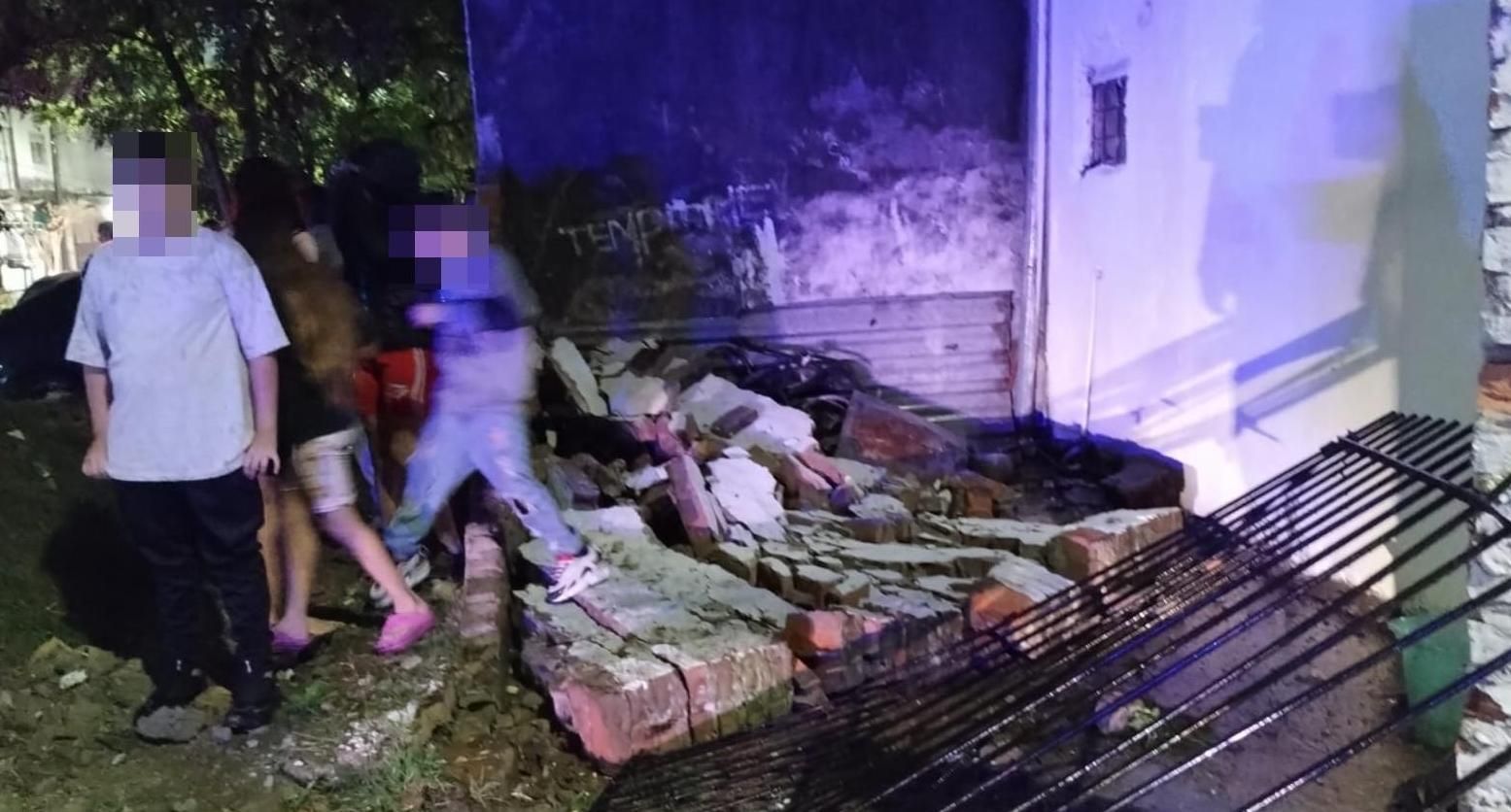 Según informaron fuentes policiales a La Unión, el incidente no dejó personas heridas, pero sí importantes daños materiales. El fuerte impacto tiró abajo el portón de la casa y derrumbó la medianera en su totalidad.