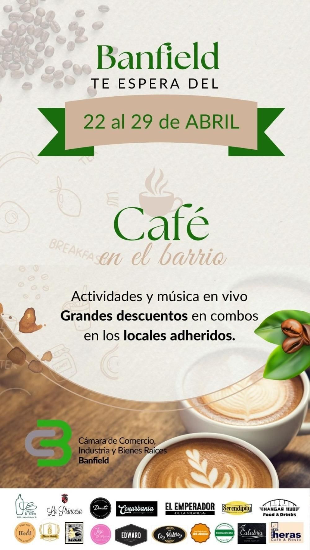 "Café en el barrio" es el nombre de la movida que busca fomentar el consumo en el polo gastronómico de Banfield, con casi 20 locales adheridos (entre ellos panaderías, cervecerías y restaurantes) que están situados en el Este y Oeste de la ciudad.