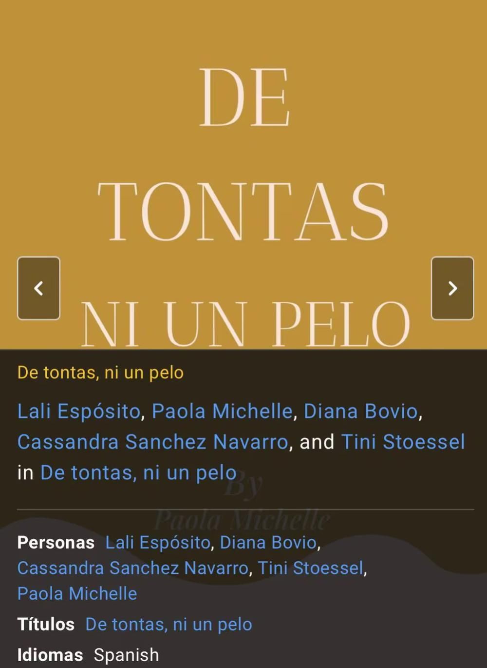 Según Internet Movie Database (IMDb), Tini y Lali harán apariciones en una miniserie, que tendrá el picante nombre De tonta, ni un pelo.