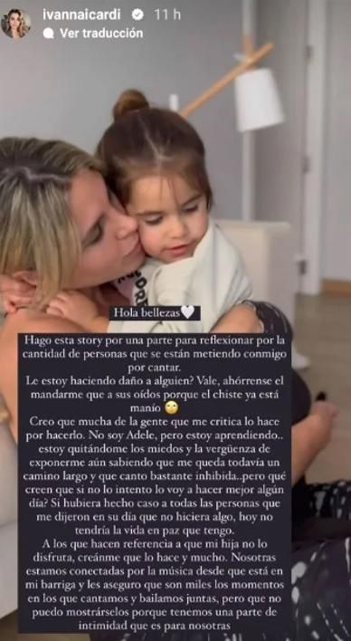 Y agregó: "No soy Adele, pero estoy aprendiendo. Estoy quitándome los miedos y la vergüenza de exponerme aún sabiendo que me queda todavía un camino largo y que canto bastante inhibida pero qué creen que si no lo intento lo voy a hacer mejor algún día? Si hubiera hecho caso a todas las personas que me dijeron en su día que no hiciera algo, hoy no tendría la vida en paz que tengo".