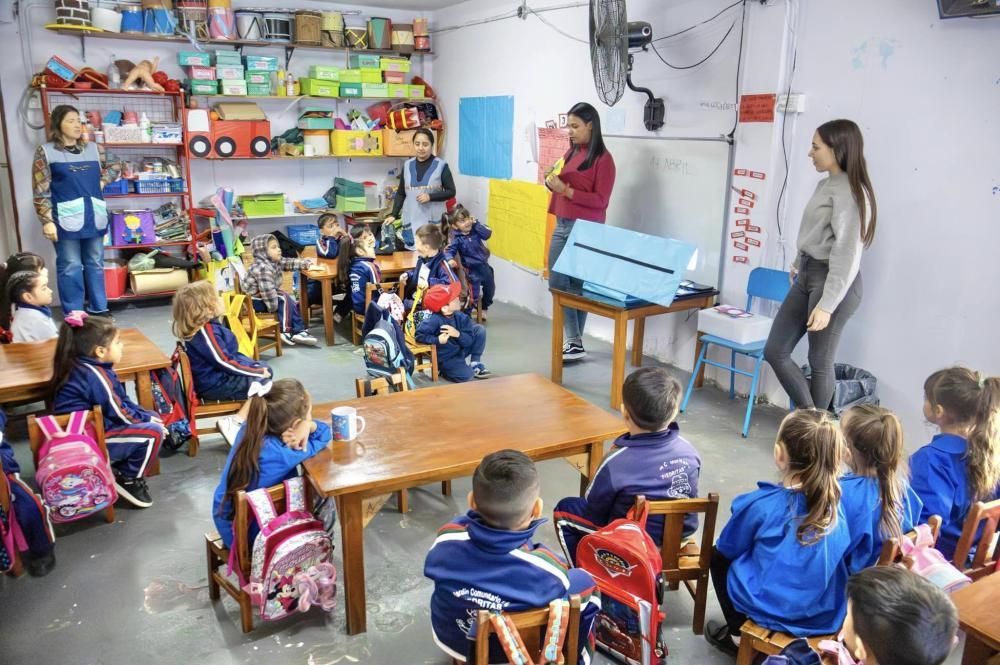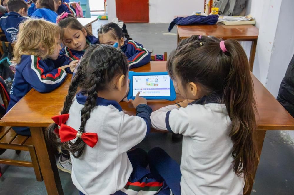 En el Jardín Comunitario "Piedritas", de Fiorito, realizaron un taller de Scratch Jr. en el que los pequeños jugaron y aprendieron a programar secuencias con tablets. Esta aplicación permite crear historias y cuentos interactivos con una galería de diferentes personajes y fondos como la ciudad, el campo, la playa y el mar. Los niños pueden dar vida a los objetos logrando que se muevan en distintas direcciones y sumarle voces, sonidos e incluso ser ellos mismos los protagonistas de sus historias.