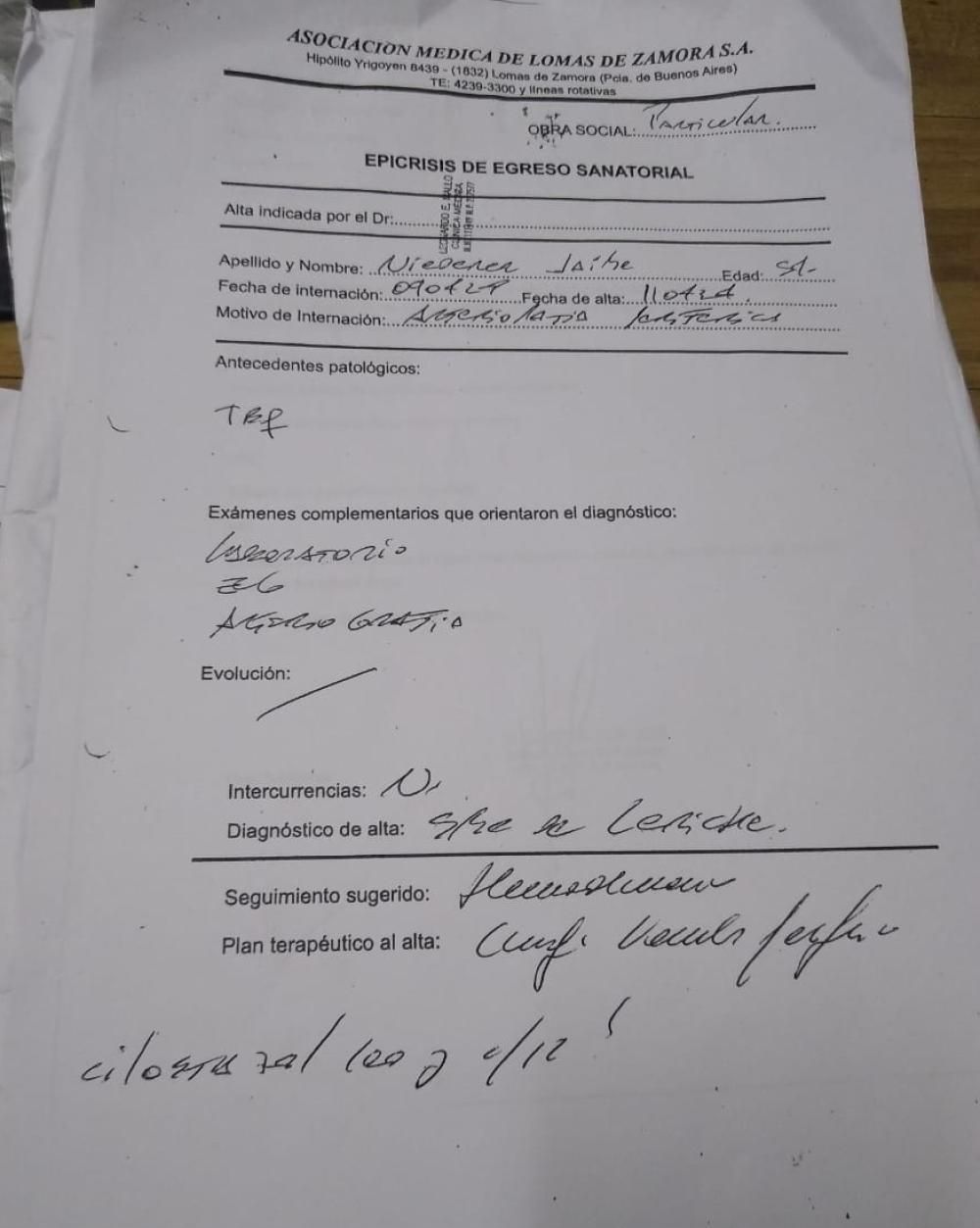 "La enfermedad hace que se le tapen las arterias principales y ya tiene un 90% de la pierna izquierda obstruida porque no le llega la sangre de forma correcta. Primero debe acudir al cardiólogo para asegurarse que esté bien y, si es así, será operado de la pierna", detalló la lomense.