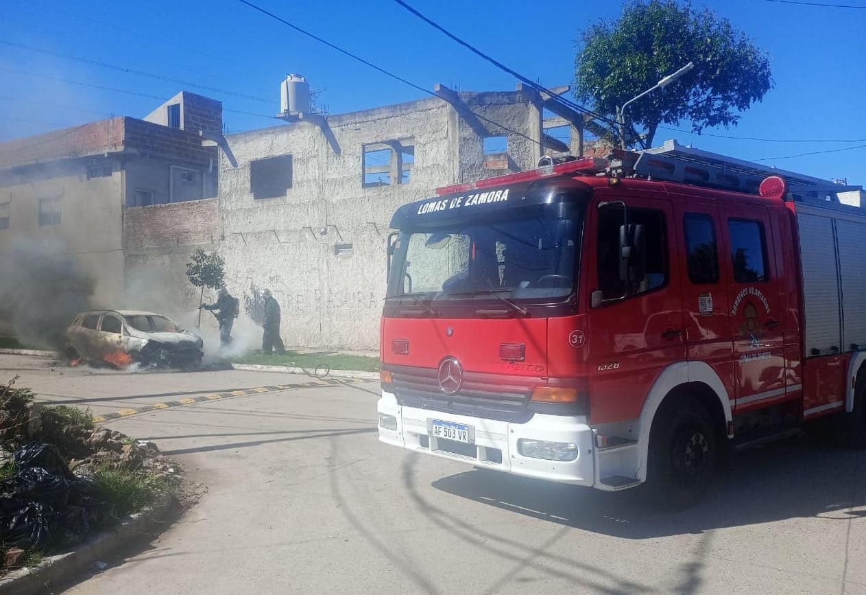 Ocurrió este mediodía. Los Bomberos Voluntarios de Lomas se encontraron con el coche envuelto en llamas y tuvieron que actuar de urgencia.