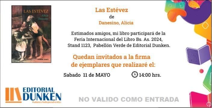 La escritora lomense Alicia Danesino (85) participará de la 48° Feria Internacional del Libro de Buenos Aires gracias a su novela "Las Estévez": el próximo sábado 11 de mayo, desde las 14, firmará ejemplares de su escrito y charlará con aquellos que asistan al prestigioso evento literario.
