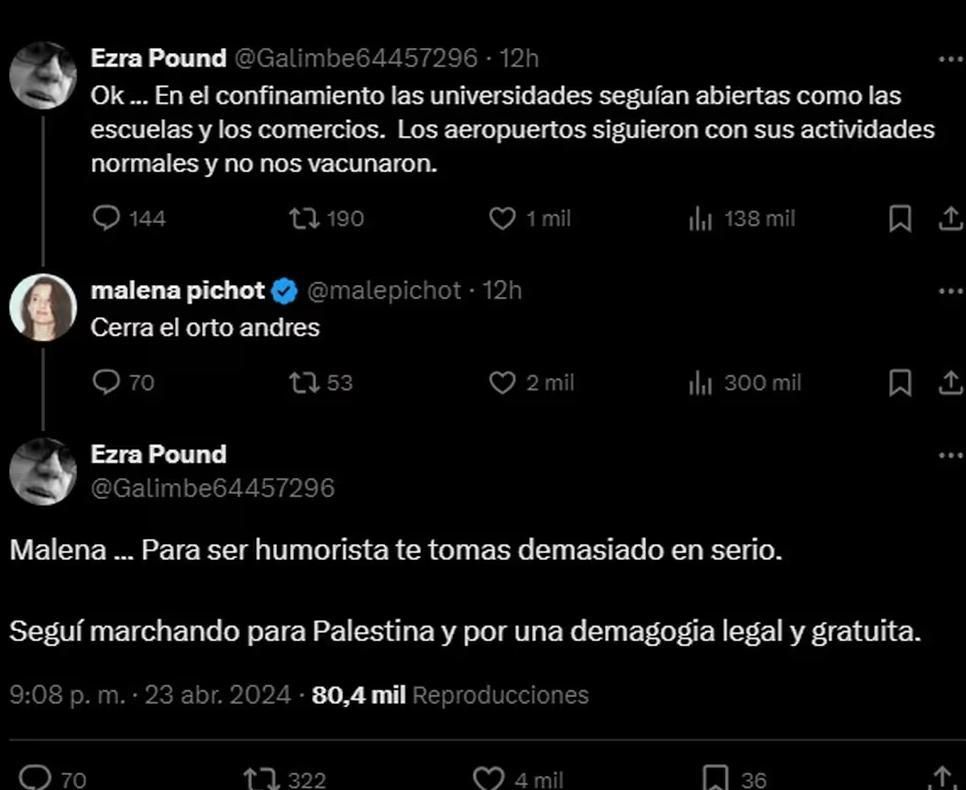 Y Andrés le respondió: "Malena... Para ser humorista te tomás demasiado en serio. Seguí marchando para Palestina y por una demagogia legal y gratuita".