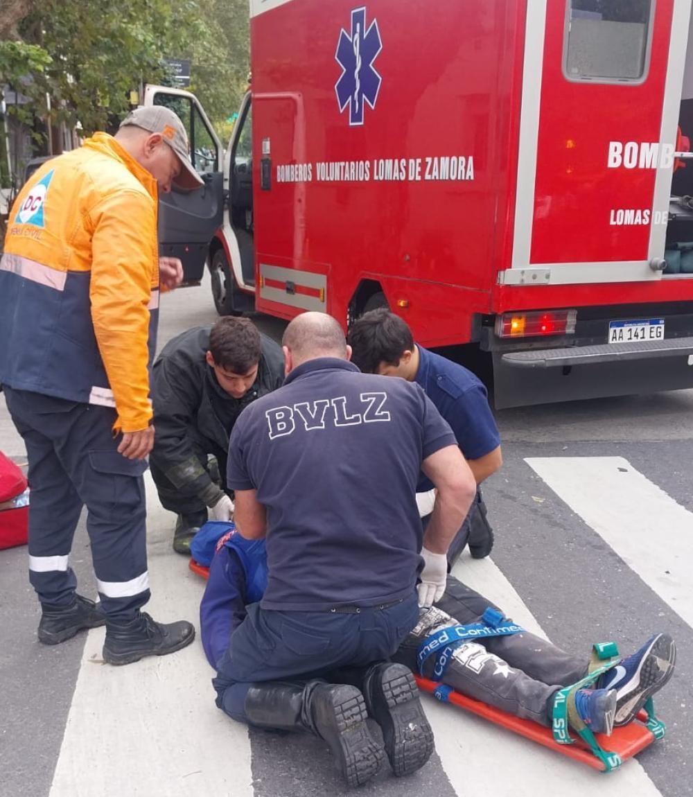Un auto y una moto protagonizaron un fuerte choque en el centro de Lomas de Zamora. El motociclista tuvo que ser hospitalizado.
