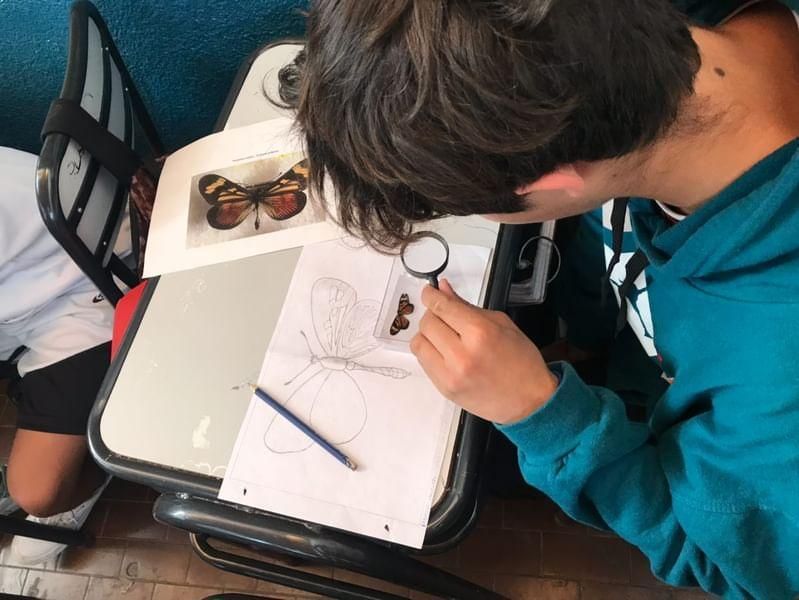 "Tuvieron que buscar fotos, investigar qué es una mariposa, qué partes tienen y la diferencia entre la diurna y nocturna. Desde la Secretaría de Ambiente del Municipio acompañaron nuestro trabajo con una clase teórica y una visita guiada a la Reserva Santa Catalina, que es el gran tesoro que tenemos en Lomas con paisajes originarios", contó Gisela, que es artista visual e ilustradora.