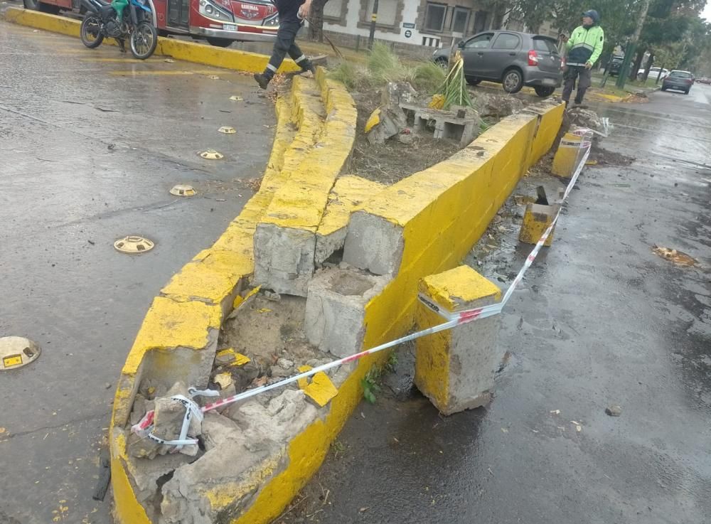 El boulevard de la avenida Alsina terminó destruido una vez más, mientras que el coche tuvo algunas roturas.