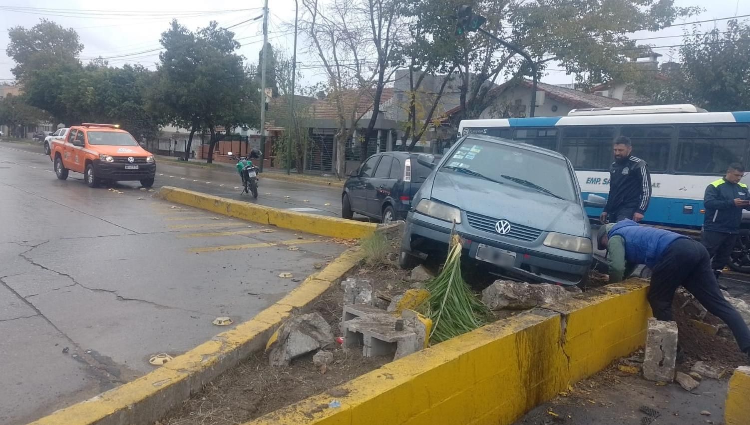 El cruce de Alsina y Matheu, al costado del paso bajo nivel, vuelve a ser noticia por un terrible siniestro vial. Esta vez, el protagonista fue un Volkswagen Gol color gris conducido por un hombre.