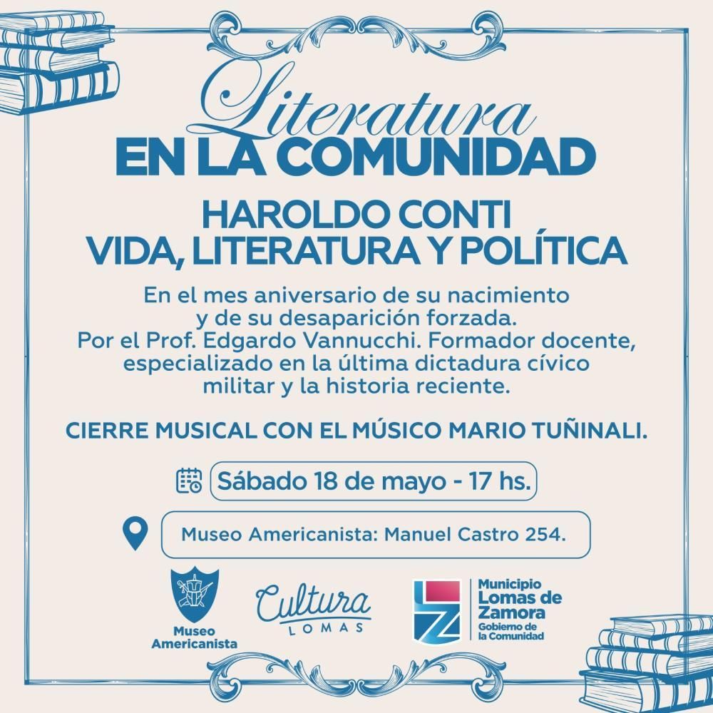 "Haroldo Conti: vida, literatura y política" es el título del tercer encuentro del ciclo "Literatura en la Comunidad", el cual pertenece a Literatura Lomas y cuenta con el apoyo del Municipio. La cita es en el Museo Americanista (Manuel Castro 254) con entrada libre y gratuita.