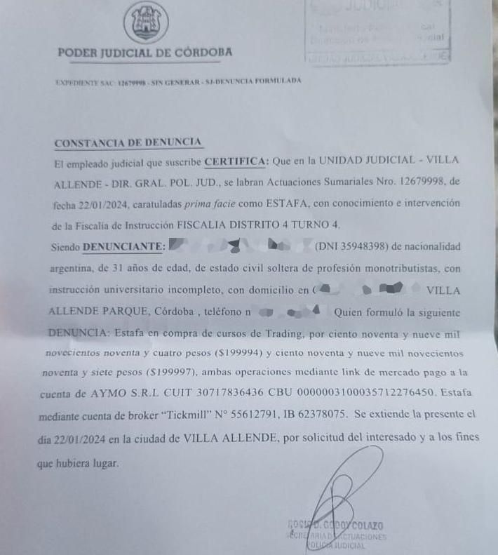 Según consta en una de las denuncias, a las que accedió este medio, "el hecho ocurrió de manera virtual", y la víctima depositó la suma de más de $631.484 que perdió en la operación fraudulenta.
