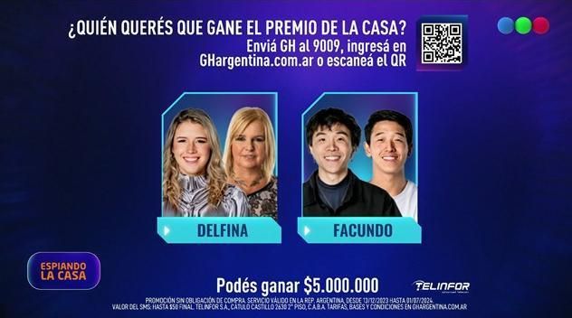 De esta forma y luego de las partidas del domingo, Facundo o Delfina, uno de ellos ganará una casa esta semana en Gran Hermano.