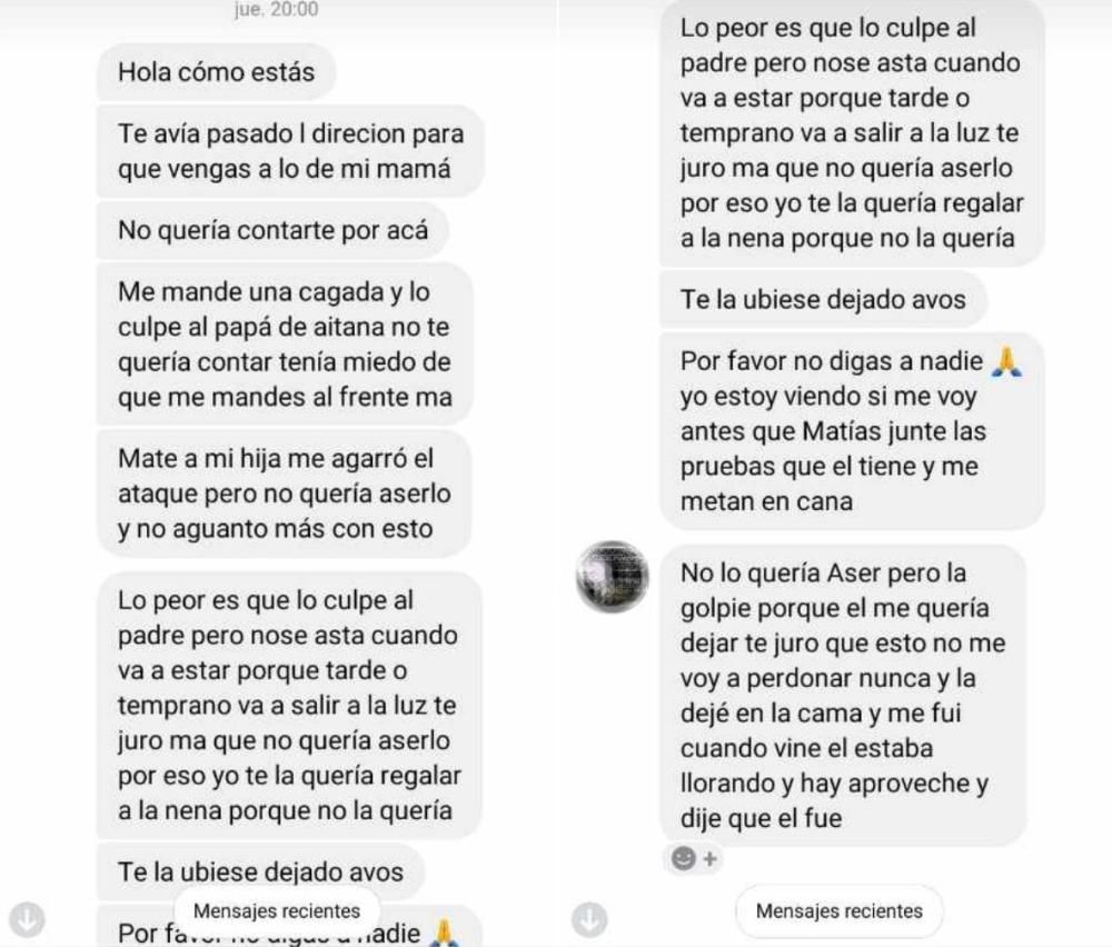 "Maté a mi hija, me agarró el ataque", le habría escrito la mujer a una amiga, en un mensaje de Facebook, cuya captura fue presentada a la Justicia como prueba "incriminante", entre otros escritos.