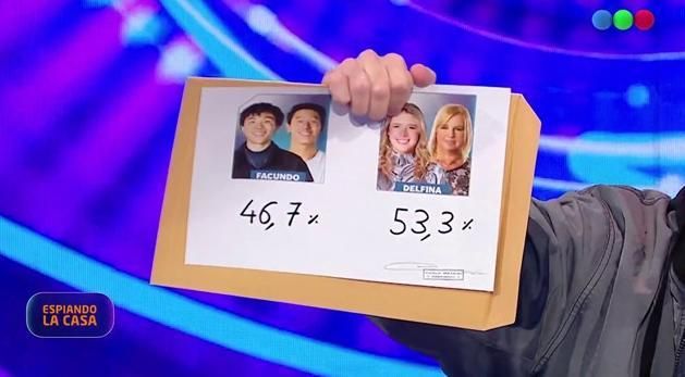 Delfina obtuvo el 53,3% de los votos y Facundo el 46,7% en el mano a mano final de la placa y se quedó con el ansiado premio.