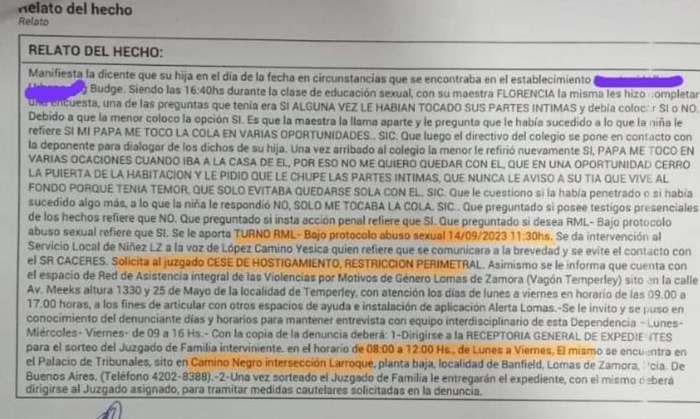 Para sorpresa de la maestra, la nena afirmó que sí. "Mi papá me tocó la cola en varias oportunidades", reafirmó, al momento de ser consultada por la profesora, quien la llamó en privado.