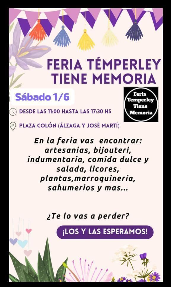 El colectivo Temperley Tiene Memoria llevará a cabo mañana una nueva feria de emprendedores en la Plaza Colón, donde los artesanos locales expondrán sus creaciones y los lomenses disfrutarán de una jornada que ya se convirtió en un emblema para la ciudad.