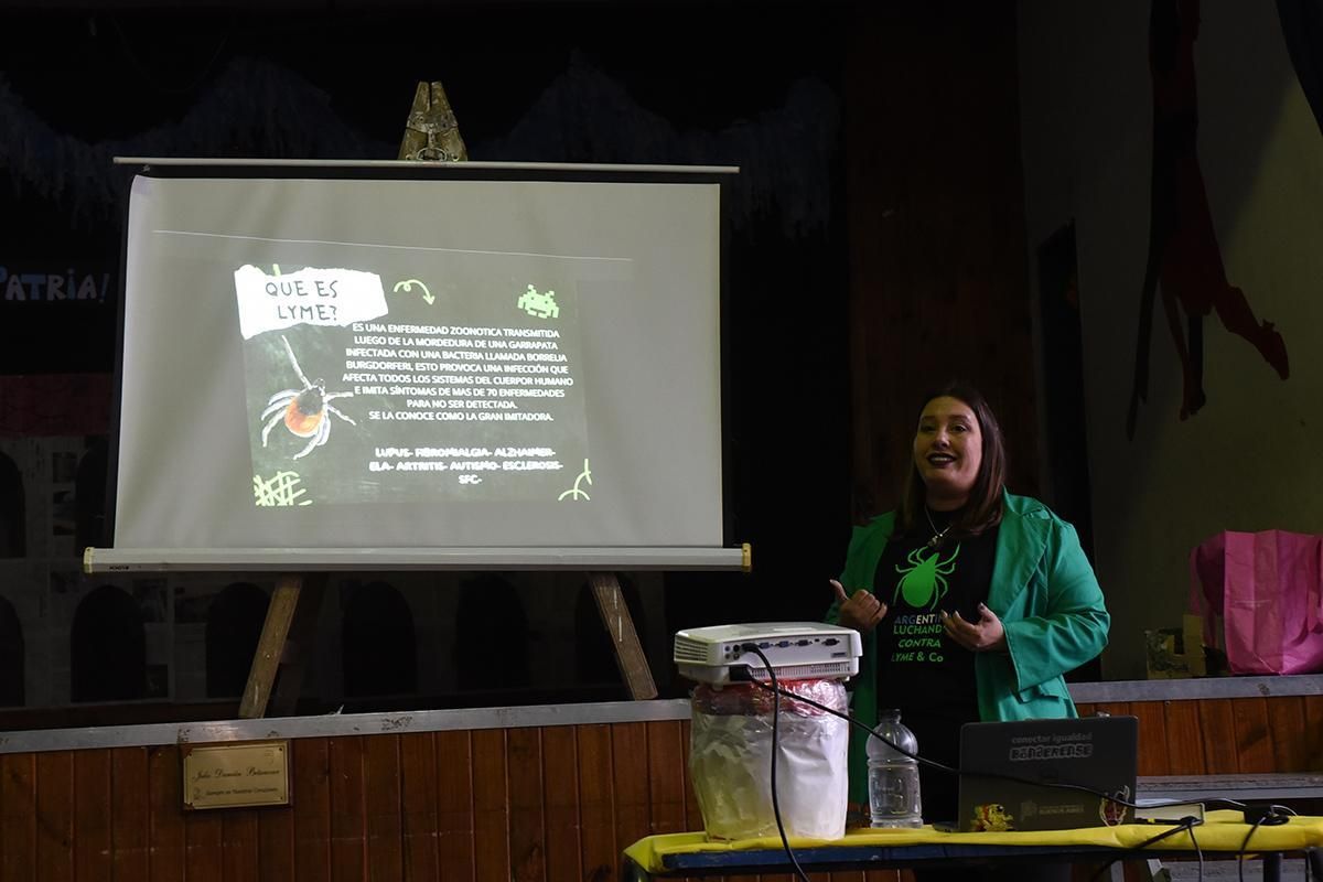 Con el objetivo de concientizar sobre el Lyme, la lomense Anabel Vidal, quien padece la enfermedad producida por la picadura de una garrapata, dio dos charlas para los alumnos de la Escuela Secundaria Nº57 de Temperley. Allí, ante la atenta mirada de los estudiantes, contó de qué trata la enfermedad, los síntomas, los cuidados a tener en cuenta y la importancia de difundir la existencia del Lyme.