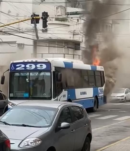 Ocurrió en la esquina de Maipú y Belgrano. Una unidad de la línea 299 se incendió mientras circulaba, poco después de salir de la terminal.