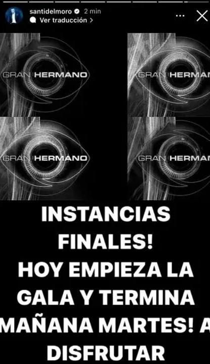 "Instancias finales. Hoy empieza la gala y termina mañana martes. A disfrutar", escribió Del Moro en una historia de Instagram.