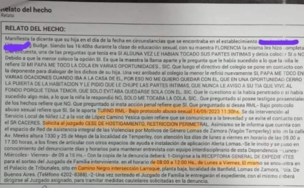 En primer lugar, la niña le confesó la pesadilla a su maestra, durante una clase de educación sexual desarrollado en agosto de 2023, y luego dio más detalles en Cámara Gesell, ya en el marco de la investigación.