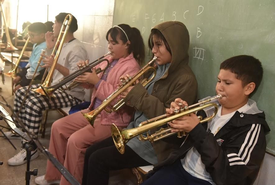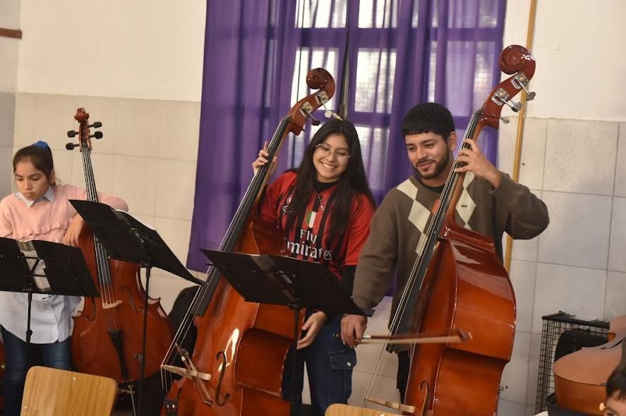 Las clases son gratuitas y tampoco los alumnos deben contar con un instrumento propio para poder sumarse a ser parte de la orquesta.