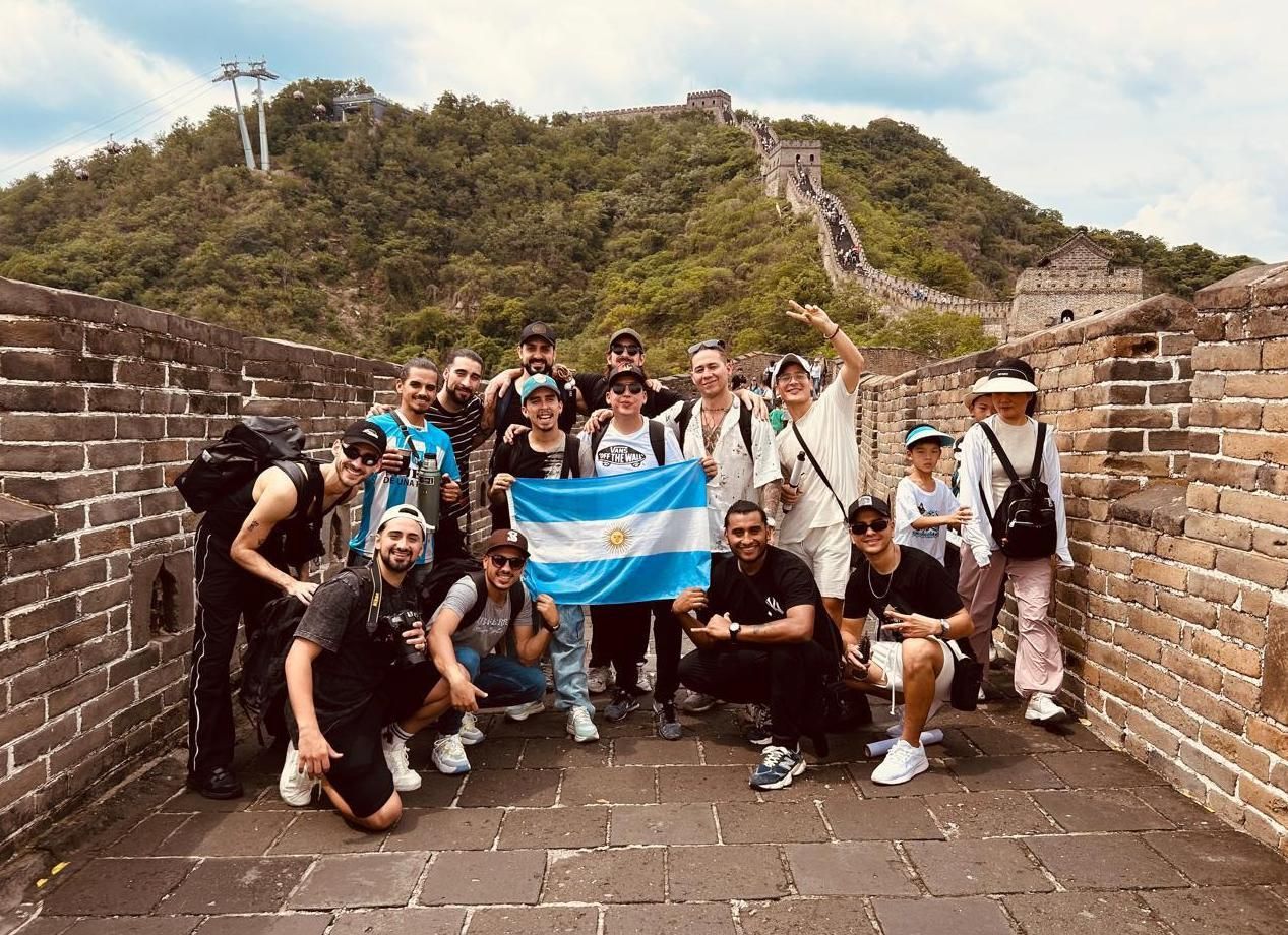 Mientras el vecino de Lomas disfruta de la gira, no perdió la oportunidad de dejar plasmada la cultura argentina en un lugar emblemático. Se animaron a "zapatear" nada menos que en la Muralla China. El video se volvió viral. "Fuimos a conocer esa maravilla del mundo y estábamos ahí con nuestra bandera de Argentina. Nos miramos y sólo dijimos 'vamos a grabar un malambo', porque no todos los días tenemos la oportunidad de estar en un lugar así. Zapateamos y la gente alrededor nos pedía fotos, fue un momento muy lindo", recordó.