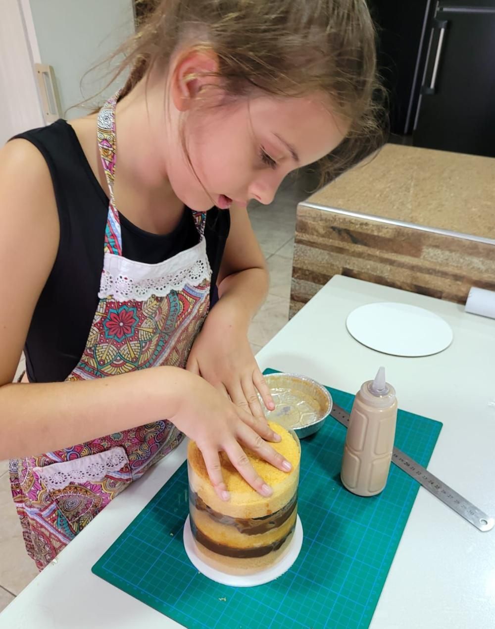 Tenía 8 años cuando comenzó a incursionar en la pastelería para la degustación de su familia, y a sus 9 ya tuvo su primer pedido para una de las maestras del cole. Actualmente, se dedica a su propio emprendimiento en sus ratos libres siempre con la supervisión de su mamá que la ayuda a hacer las compras de lo que necesita y los presupuestos para sus clientes.