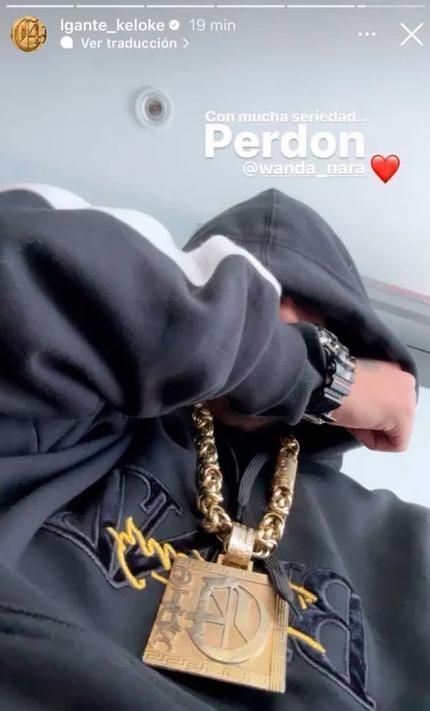 Mientras que el cantante subió una historia a su cuenta de Instagram pidiéndole disculpas a Wanda Nara, si bien no se conoce la razón, se especula que sea por la canción con la China Suárez.