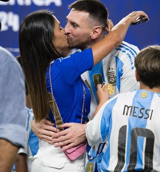 Al margen del posteo, en las redes sociales corrieron fotos del festejo familiar del capitán de la Selección Argentina, incluyendo una postal de un piquito con su esposa.