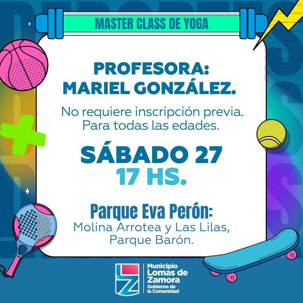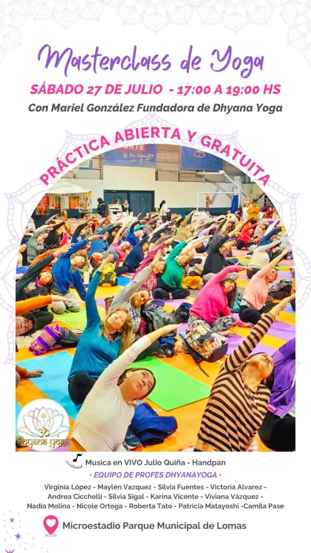 En una charla con La Unión, Mariel (fundadora de la escuela de yoga Dhyana Yoga) explicó que la práctica es abierta y sin costo para todas las edades, la cual se desarrollará en el Microestadio del Parque Municipal de Lomas, situado en Molina Arrotea y Las Lilas.