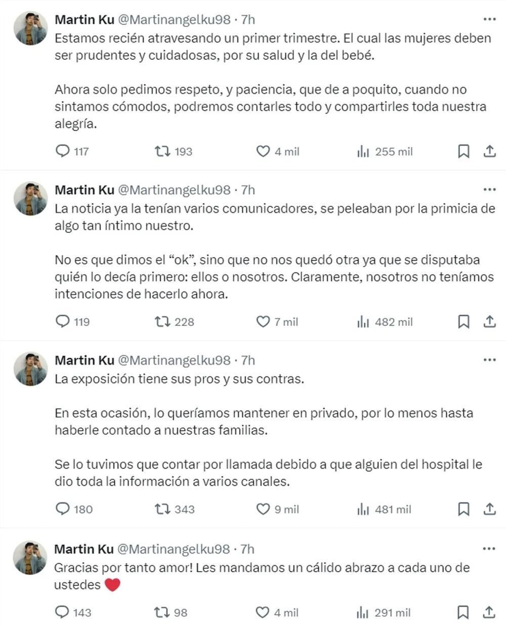 "Se lo tuvimos que contar por llamada debido a que alguien del hospital le dio toda la información a varios canales", continuó su descargo el joven de origen oriental.