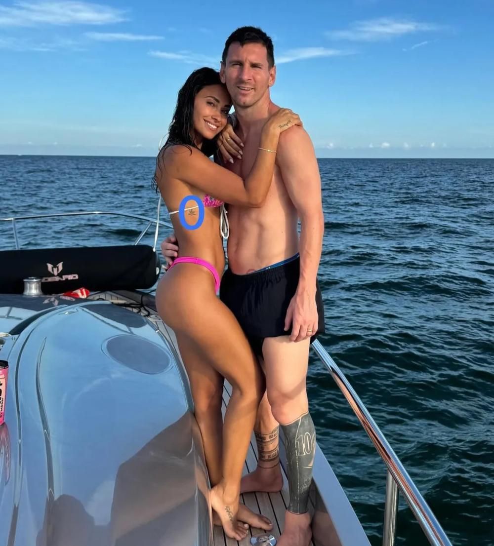 En la fotografía donde se los ve abrazados, se puede ver que la esposa de La Pulga tiene grabada la palabra "Leo". Si bien el crack cuenta con muchos tatuajes, se desconoce hasta el momento si tuvo el mismo gesto que su esposa.