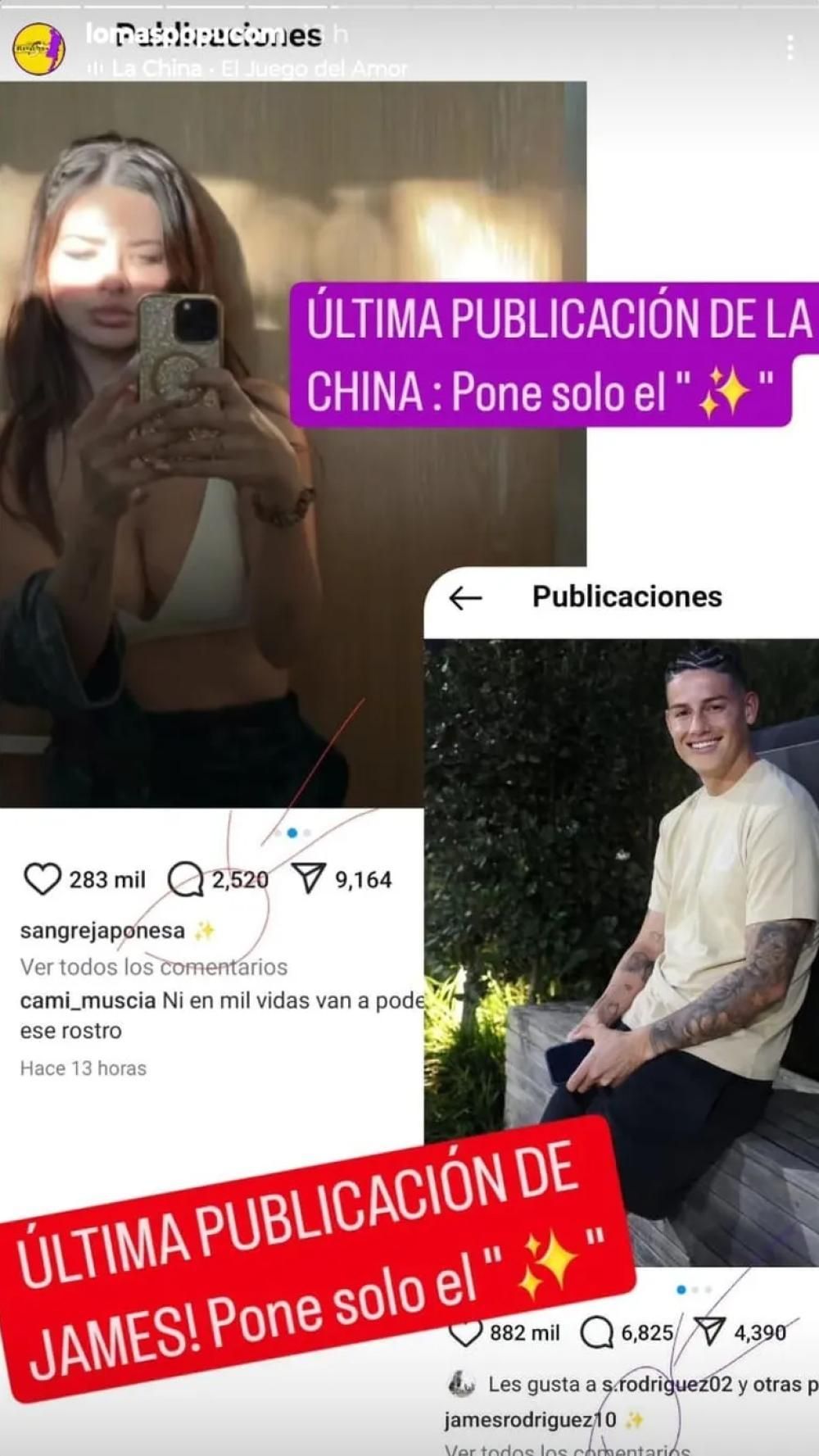 "Otro dato que me llamó la atención Es que un amigo de James empezó a seguir a la cuenta privada de la China", dicen el citado portal.