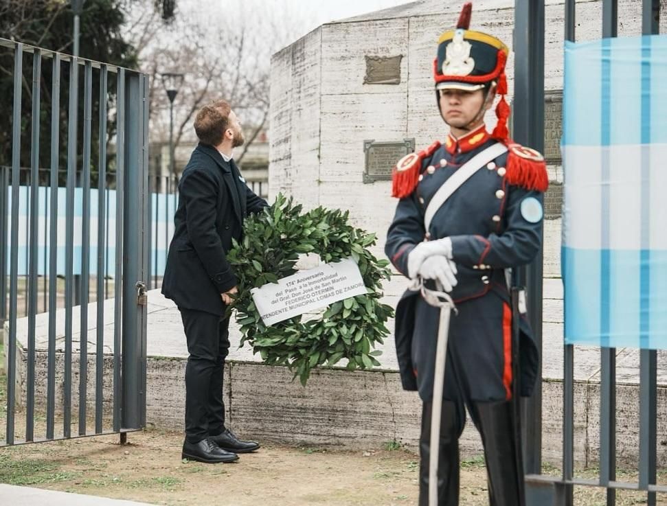 El evento contó con la entrega de ofrendas florales por parte de las autoridades presentes y referentes de distintas instituciones, las cuales se colocaron al pie del monumento de San Martín que está situado en el espacio público.