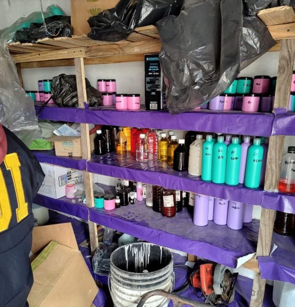 Fuentes oficiales señalaron que entre los elementos químicos secuestrados había formol, una sustancia que puede ser muy dañina para la salud si no se manipula con las medidas de seguridad adecuadas.