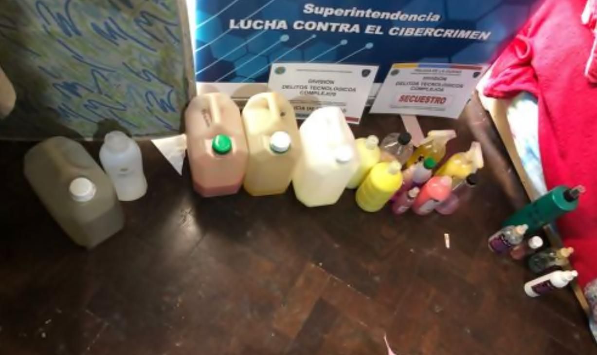 En los allanamientos, lograron incautar nueve bidones de 5 litros de sustancias de diversos colores, tres teléfonos celulares, 16 botellas, 329 envases de diferentes tamaños, 15 potes de crema, un posnet y documentación de interés para la causa.