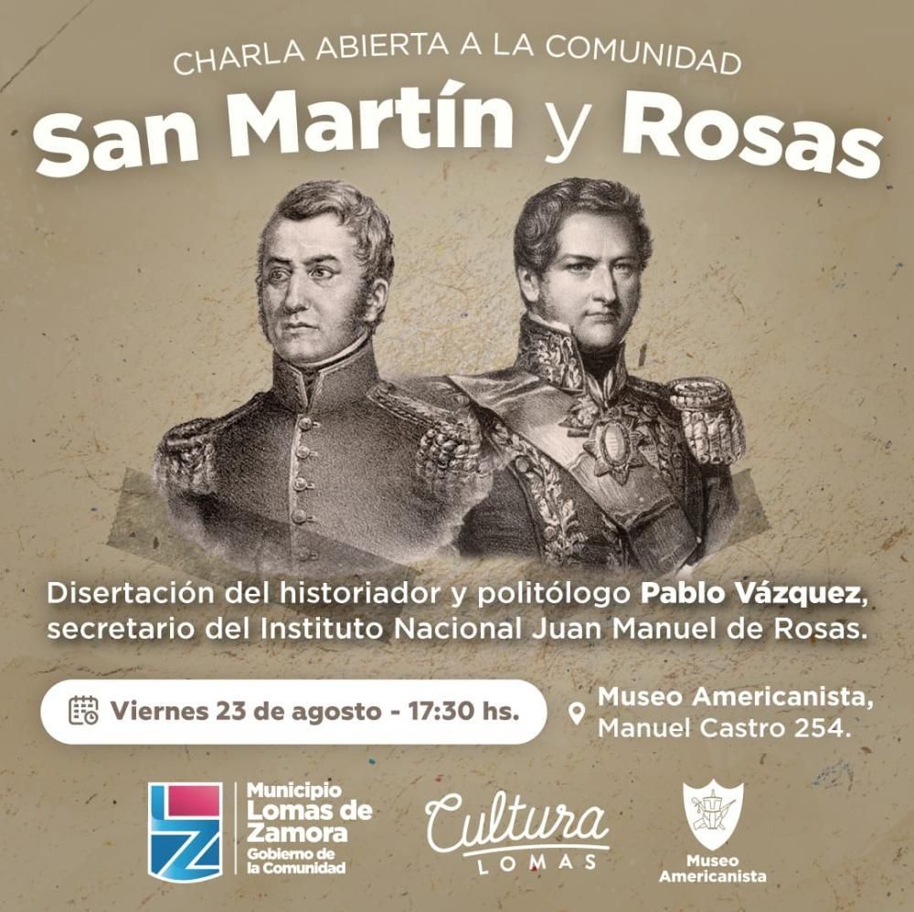 El evento contará con el disertante Pablo Vázquez, secretario del Instituto Nacional de Investigaciones Históricas Juan Manuel de Rosas, quien será el encargado de contarles a los lomenses sobre la relación histórica de San Martín y Juan Manuel de Rosas.