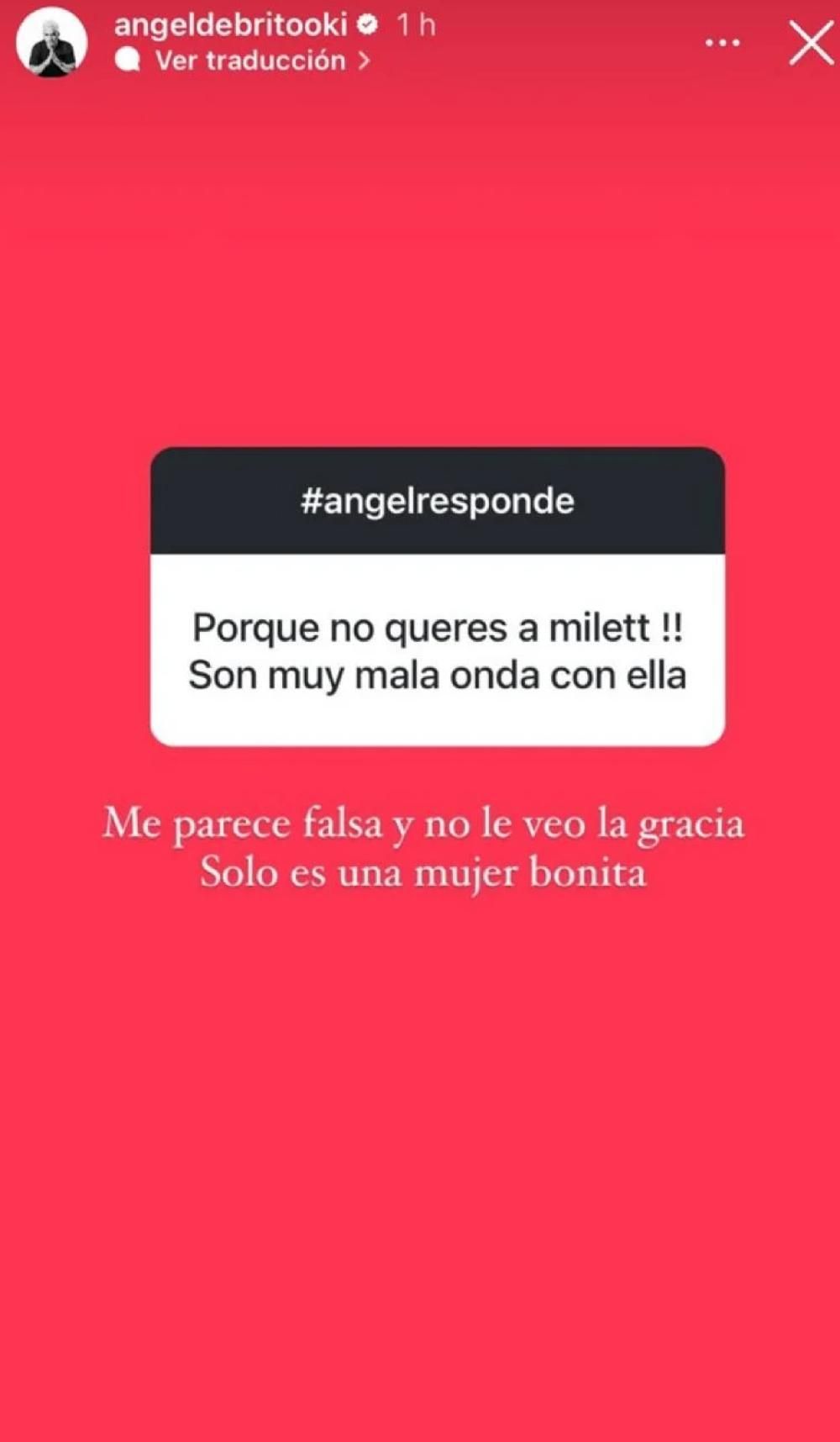 Ángel de Brito no se banca a Millet Figueroa, la pareja de Marcelo Tinelli, y no tuvo reparos en contar los motivos en las redes sociales.